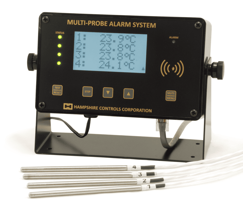 Our sensor-based monitoring and alarm products include single-probe and multi-probe systems measuring a comprehensive range of conditions including temperature, humidity, chemical concentration (e.g., CO2 ppm), pressure, flow rate, voltage, current, status indicators (e.g., door open/closed), etc. Hampshire Controls delivers monitors and alert notification systems with unparalleled accuracy, resolution, and repeatability – using the suite of sensors required for your application.